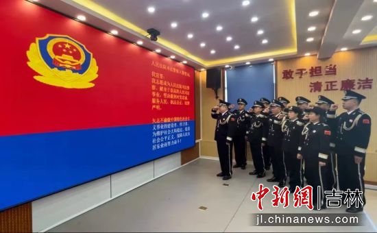 當(dāng)天,該院全體司法警察身著警禮服整齊劃一、警容嚴(yán)整,面對(duì)警旗,莊嚴(yán)的宣誓:“我志愿成為人民法院司法警察,獻(xiàn)身于崇高的人民司法事業(yè),堅(jiān)決做到對(duì)黨忠誠(chéng)、服務(wù)人民、執(zhí)法公正、紀(jì)律嚴(yán)明……”