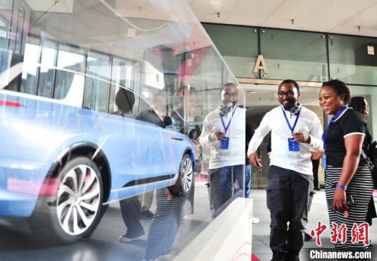 在一臺發(fā)動機(jī)前,杜喬駐足許久,一邊仔細(xì)看著復(fù)雜的參數(shù),一邊和同伴交流。他感慨中國新能源汽車產(chǎn)業(yè)的技術(shù)水平之高,應(yīng)用成果之多。“我現(xiàn)在做的課題是儲能系統(tǒng),與智能控制、電力設(shè)備有關(guān)!倍艈陶f,自己的研究成果未來可以應(yīng)用于汽車領(lǐng)域。