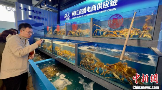 2024年4月23日,吉林琿春一海鮮店,游客在選購俄羅斯帝王蟹。(資料圖)中新社記者 郭佳 攝