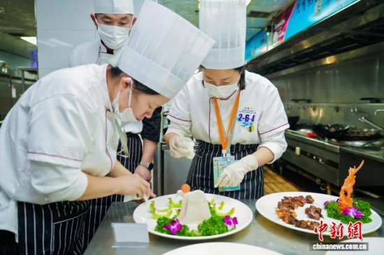 當(dāng)天上午,多支代表隊(duì)在后廚忙碌,操作臺(tái)上,參賽廚師依照藥膳指導(dǎo)師開(kāi)具的方子,將精選的人參等藥材進(jìn)行預(yù)處理,再與母雞、松花江魚(yú)等主料一同入鍋!斑@道湯適合體虛者,我們控制了人參用量,確保其口味和養(yǎng)生功效!币晃贿x手介紹。