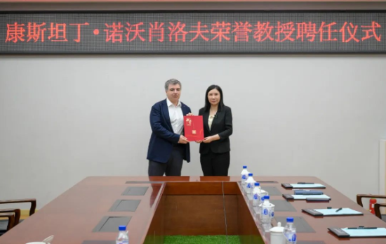 在聘任儀式上,郝群代表學(xué)校向康斯坦丁·諾沃肖洛夫教授頒發(fā)長春理工大學(xué)榮譽(yù)教授聘書。會(huì)談結(jié)束后,康斯坦丁·諾沃肖洛夫教授在東區(qū)圖書館報(bào)告廳為長春理工大學(xué)師生帶來了一場以“面向未來的材料”為主題的學(xué)術(shù)報(bào)告。
