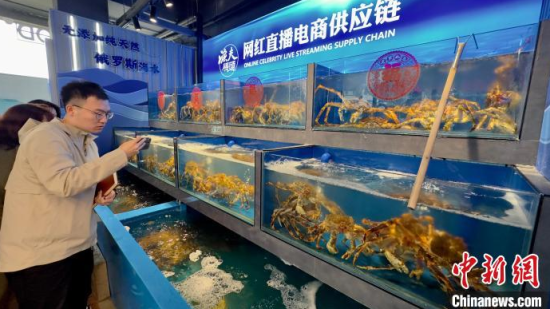 2024年4月23日,吉林琿春一海鮮店,游客在選購俄羅斯帝王蟹。(資料圖)郭佳攝