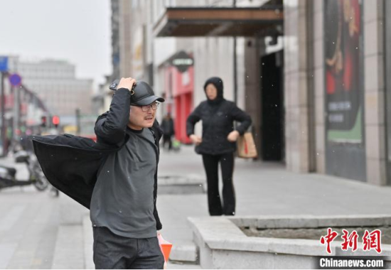 3月12日,長(zhǎng)春市迎來(lái)大風(fēng)天氣,市民捂住帽子在風(fēng)中行走!埇 攝