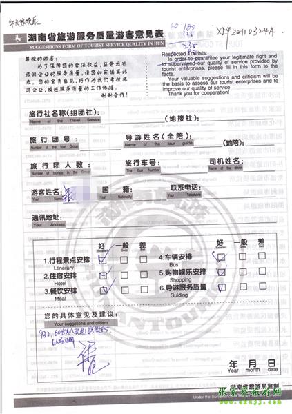 - 游客夏先生為表揚導(dǎo)游李姣姣寫來表揚信致我張家界... [14811]
