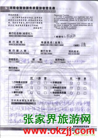 - 游客夏先生為表揚(yáng)導(dǎo)游李姣姣寫來表揚(yáng)信致我張家界... [14811]