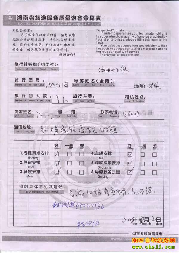 2010年5月2日福建汪先生旅游質(zhì)量反饋