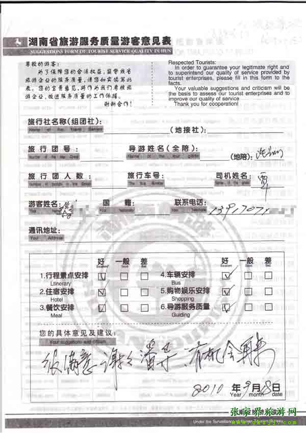 - 游客夏先生為表揚(yáng)導(dǎo)游李姣姣寫來表揚(yáng)信致我張家界... [14811]