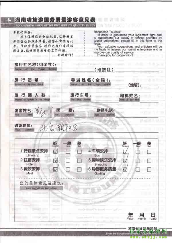 2010年9月19日北京鄭小姐旅游質量反饋