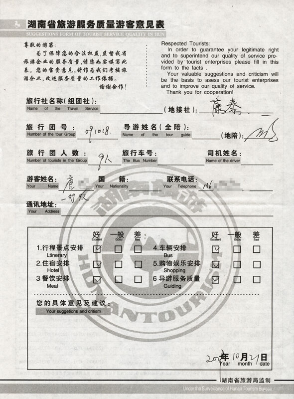 - 2011年10月5日黃先生一行17人旅游質量反饋 [7847]