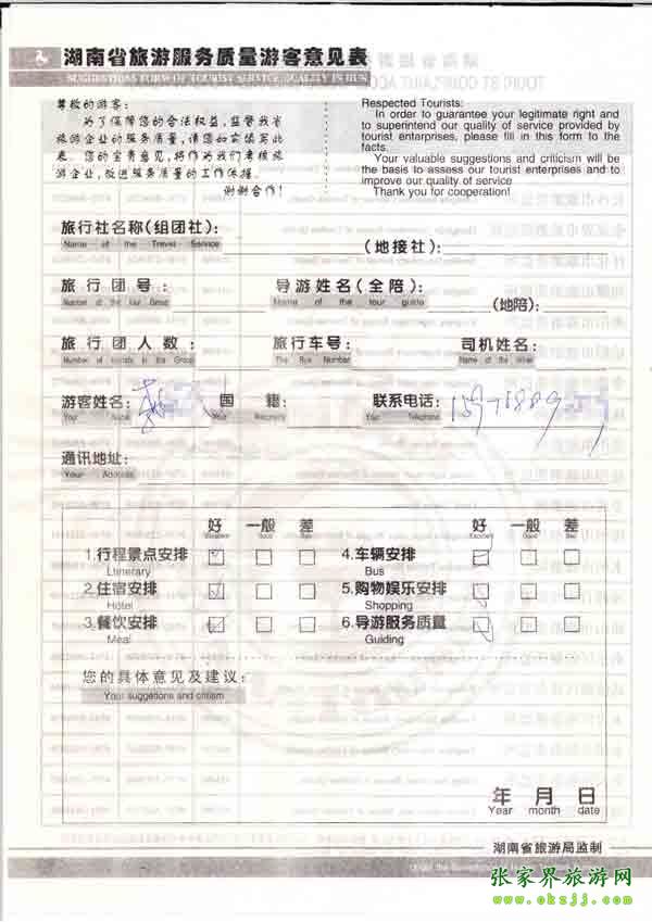 - 游客夏先生為表揚(yáng)導(dǎo)游李姣姣寫來表揚(yáng)信致我張家界... [14811]