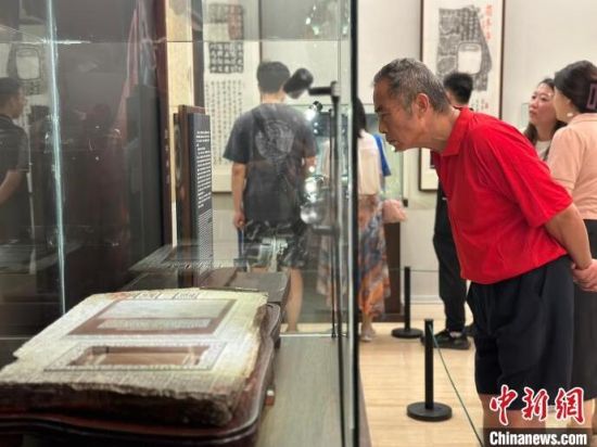 觀眾觀賞《論語》硯。 郭佳 攝