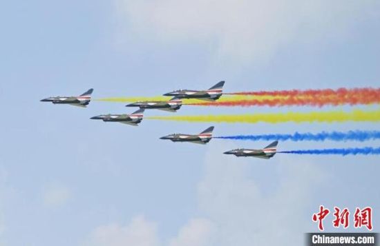 紅鷹飛行表演隊在進(jìn)行飛行表演。張瑤 攝八一飛行表演隊在進(jìn)行飛行表演。張瑤 攝紅鷹飛行表演隊在進(jìn)行飛行表演。張瑤 攝殲-20。張瑤 攝運(yùn)油-20、殲-20、殲-16同框向公眾展示。張瑤 攝