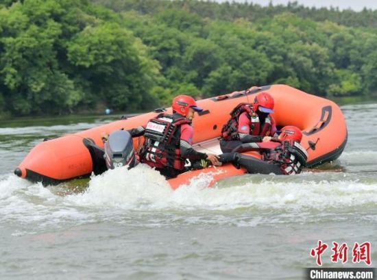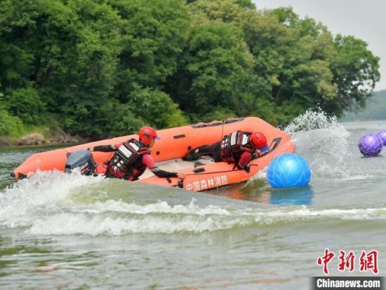 6月21日,吉林長春,消防救援人員正在進行水域救援翻舟自救科目訓練。目前,吉林省已進入汛期,吉林省森林消防總隊特勤大隊緊貼實戰(zhàn)水域救援任務,開展水域救援訓練。消防救援人員重點對橡皮艇操控、操舟繞標、翻船自救、O型救援等內容開展訓練,全面做好防汛搶險等綜合性救援任務準備。(完)