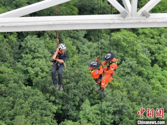 7月2日,吉林長春,消防救援人員正在進行繩索救援比拼。當天,在吉林省森林消防總隊第六屆“火焰藍”大練兵比武中,7支隊伍模擬高空救援,圍繞不同氣溫、不同場地,模擬人員摔傷、墜崖等被困實戰(zhàn)情景,利用繩索救援技術開展比拼。(完)