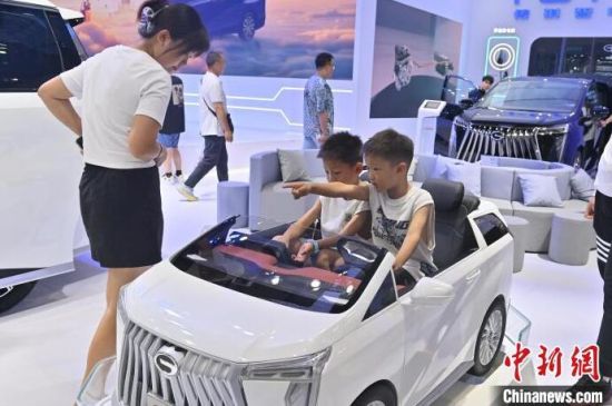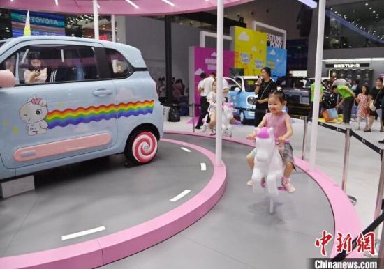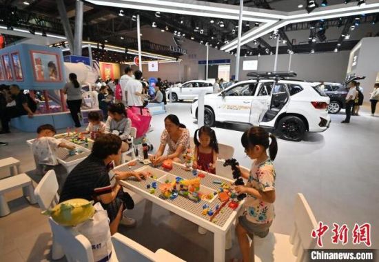 7月13日,在第21屆長(zhǎng)春國(guó)際汽車(chē)博覽會(huì)上,小朋友在淘氣堡玩耍。本屆長(zhǎng)春汽博會(huì)有全球124個(gè)品牌的展車(chē)亮相,現(xiàn)場(chǎng)設(shè)置了許多游戲體驗(yàn)項(xiàng)目,吸引小朋友們參與。 (中新社記者 張瑤/攝)