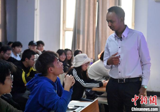 11月6日,在長春師范大學,馬宋在上課。1993年出生的馬宋來自蘇丹,畢業(yè)于中國地質(zhì)大學計算機技術與科學專業(yè),畢業(yè)后在福建一家企業(yè)做IT工程師。喜歡教學的馬宋,去年來到長春師范大學“跨界”成為一名計算機專業(yè)的老師。馬宋說,他和中國的年輕人相處得非常愉快,未來他想扎根在這里,為學生們傳道授業(yè)解惑。中新社記者 張瑤 攝