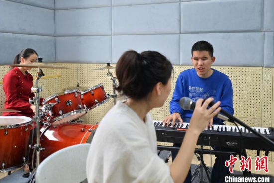 11月14日,吉林長(zhǎng)春,“逐暗逐光”樂(lè)隊(duì)成員在交流排練細(xì)節(jié)。長(zhǎng)春大學(xué)特教學(xué)院有一支名叫“逐暗逐光”的樂(lè)隊(duì),樂(lè)隊(duì)成員都是視障學(xué)生。他們因音樂(lè)相聚在一起,用音樂(lè)去驅(qū)逐黑暗追逐光明。中新社記者 張瑤 攝