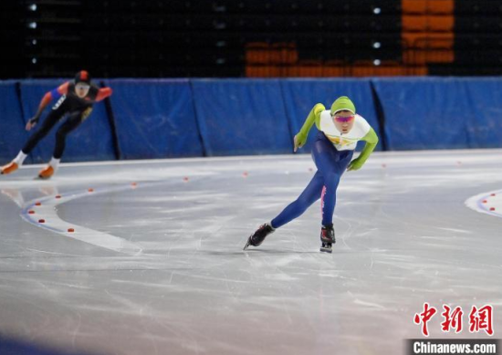 11月15日,2024-2025年度吉林省青少年速度滑冰錦標賽在吉林省速滑館開賽,來自全省各地500余名運動員參賽。該錦標賽是吉林省青少年A級賽事。為期三天的時間里,運動員們按照年齡分成4個組別,圍繞54個競賽小項進行比拼。圖為運動員在激烈比拼。中新社記者 張瑤 攝
