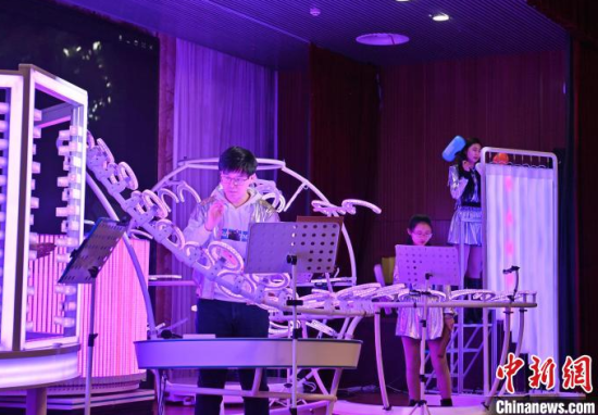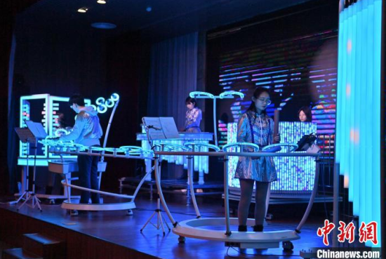 2月22日,在長春中國光學(xué)科學(xué)技術(shù)館,小朋友在體驗(yàn)光學(xué)樂器。當(dāng)天,由該館工作人員組成的OMI樂隊(duì)為觀眾獻(xiàn)上了一場精彩演出,他們利用由傳感器和其他光學(xué)元件制成的光學(xué)樂器,結(jié)合專業(yè)的電子音源,通過用手或鼓棒遮擋光束來產(chǎn)生電信號(hào),觸發(fā)音源,發(fā)出聲音和變換顏色。這種演奏方式仿佛是通過敲擊空氣來演繹美妙的樂曲。中新社記者 張瑤 攝