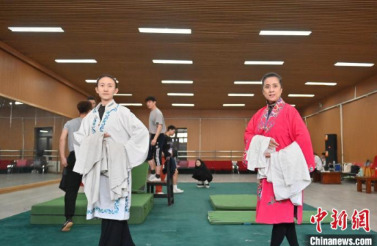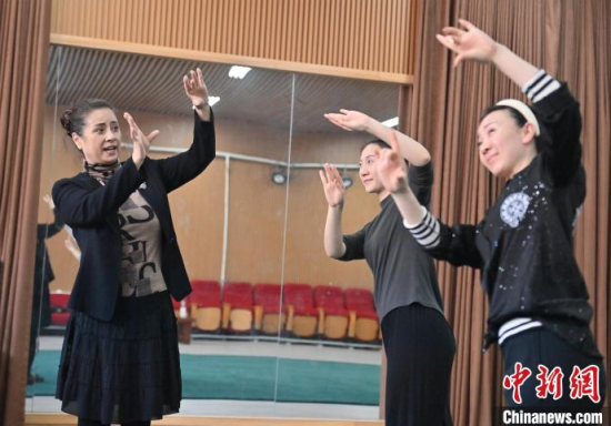 4月10日,在位于吉林省長(zhǎng)春市的吉林省吉?jiǎng)F(tuán),安靜芳(左)在為青年演員說(shuō)戲。近期,中國(guó)文化和旅游部公布第六批國(guó)家級(jí)非物質(zhì)文化遺產(chǎn)代表性傳承人名單,吉?jiǎng)〈硇詡鞒腥税察o芳位列其中。入行超過(guò)四十年的她,曾塑造了樊梨花、鐵扇公主等眾多經(jīng)典角色。近年來(lái),她退居幕后潛心授藝培育新人,以匠心守護(hù)這門年輕劇種的傳承發(fā)展。中新社記者 張瑤 攝