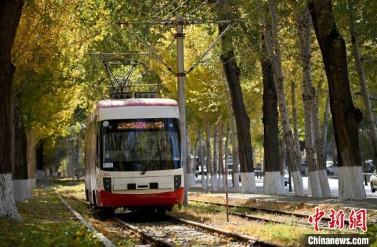 2023年10月23日,吉林長(zhǎng)春,正在運(yùn)行的54路有軌電車。作為時(shí)代的符號(hào),它在不少東北題材的影視作品中都有出現(xiàn)。(資料圖)中新社記者 張瑤 攝