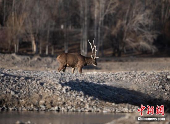 2023年1月24日,西藏拉薩市達(dá)孜區(qū)幫堆鄉(xiāng)附近,白唇鹿在拉薩河畔覓食。中新社記者 貢嘎來(lái)松 攝