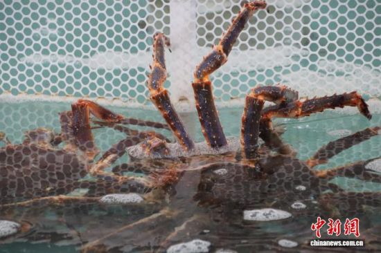 7月19日,吉林琿春,暫養(yǎng)池中的帝王蟹。 中新社記者 蔣文月 攝